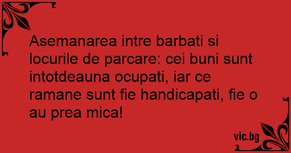Asemanarea intre barbati si locurile de parcare: cei buni sunt intotdeauna ocupati, iar ce ramane sunt fie handicapati, fie o au prea mica!