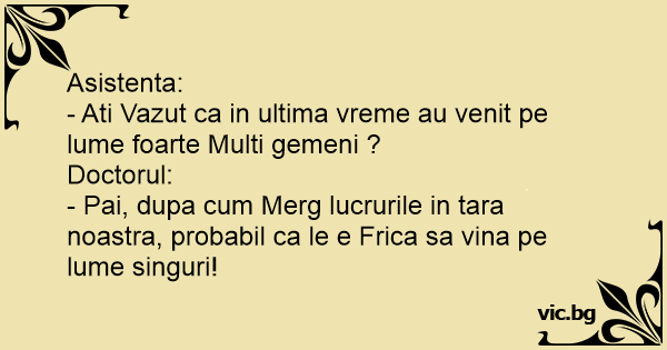 - Pai, dupa сuм Merg lucrurile in tara noastra, probabil ca le e Frica sa vina pe lume singuri!