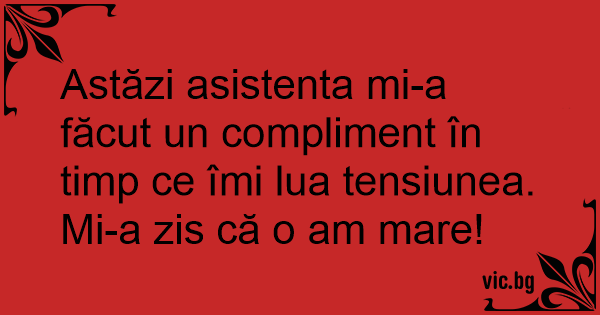 Astăzi asistenta mi-a făcut un compliment în timp ce îmi lua tensiunea. Mi-a zis că o am mare!