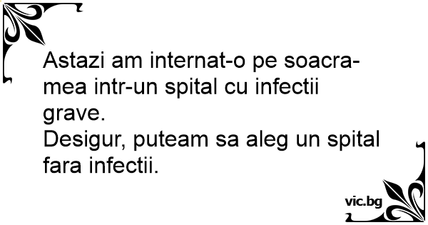 Astazi am internat-o pe soacra-mea intr-un spital cu infectii grave.