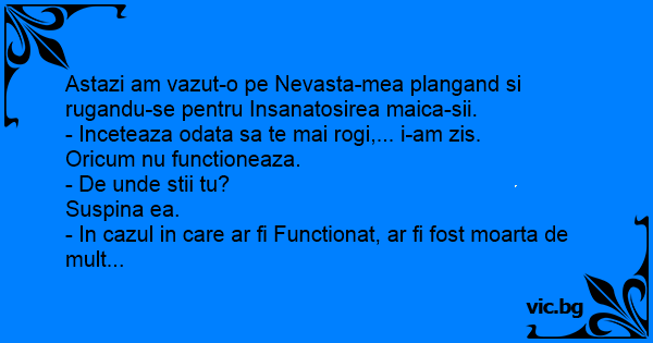 - Inceteaza odata sa te mai rogi,... i-am zis.