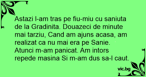 Astazi l-am tras pe fiu-miu cu saniuta de la Gradinita. Douazeci de minute mai tarziu, Cand am ajuns acasa, am realizat ca nu mai era pe Sanie.