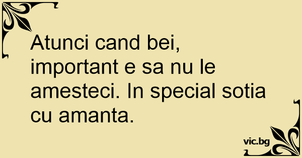 Atunci cand bei, important e sa nu le amesteci. In special sotia cu amanta.