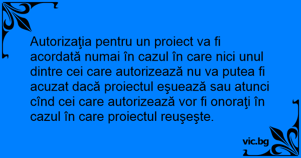 Autorizaţia pentru un proiect va fi acordată numai în cazul în care nici unul dintre cei care autorizează nu va putea fi acuzat dacă proiectul eşuează sau atunci cînd cei care autorizează vor fi onoraţi în cazul în care proiectul reuşeşte.