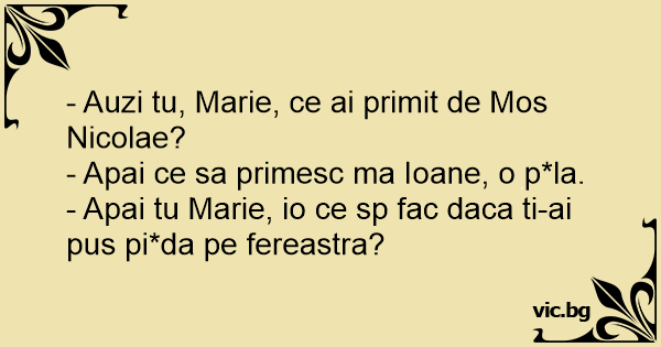 - Apai tu Marie, io ce sp fac daca ti-ai pus pi*da pe fereastra?