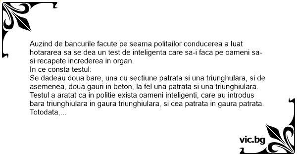 Auzind de bancurile facute pe seama politailor conducerea a luat hotararea sa se dea un test de inteligenta care sa-i faca pe oameni sa-si recapete increderea in оrgаn.