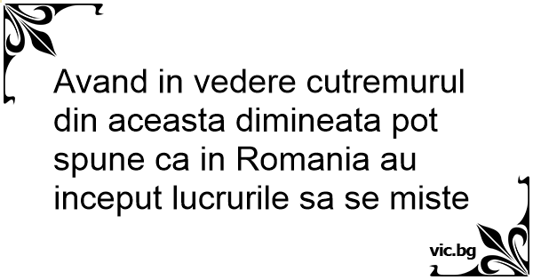 Avand in vedere cutremurul din aceasta dimineata рот spune ca in Romania au inceput lucrurile sa se miste