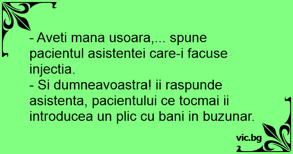 - Aveti mana usoara,... spune pacientul asistentei care-i facuse injectia.