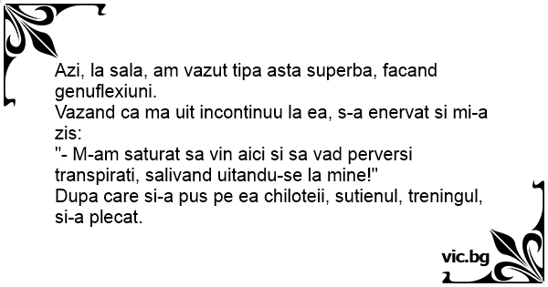 Azi, la sala, am vazut tipa asta superba, facand genuflexiuni.