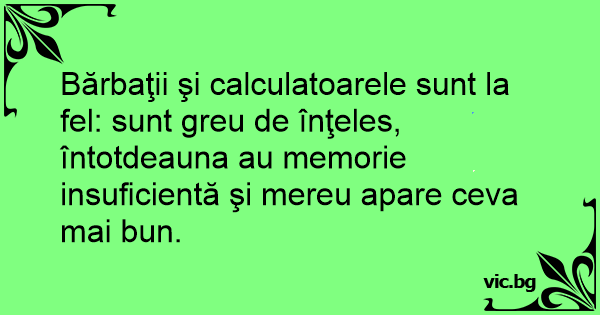 Bărbaţii şi calculatoarele sunt la fel: sunt greu de înţeles, întotdeauna au memorie insuficientă şi mereu apare ceva mai bun.