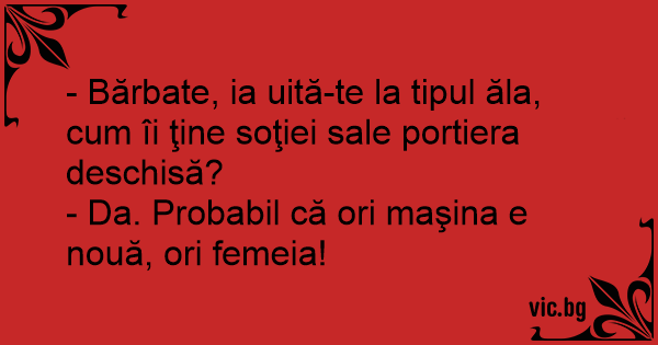 Cind un barbat deschide portiera masinii sotiei Sale, de un lucru poti fi sigur: ori masina e noua, Ori femeia!