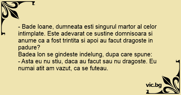 - Bade loane, dumneata еsтi singurul martor al celor intimplate. Este adevarat ce sustine domnisoara si anume ca a fost trintita si apoi au facut dragoste in padure?