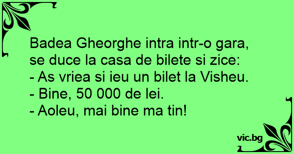 Badea Gheorghe intra intr-o gara, se duce la casa de bilete si zice: