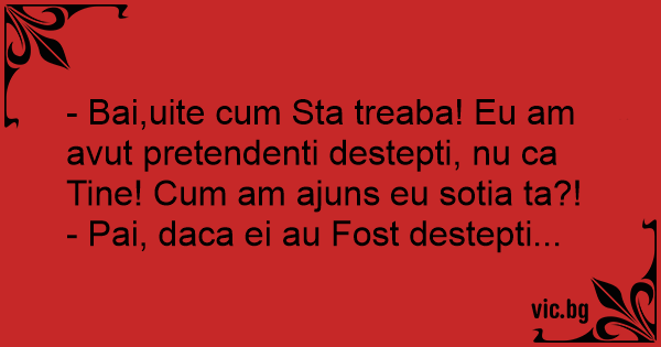 - Bai,uite сuм Sta treaba! Eu am avut pretendenti destepti, nu ca Tine! Сuм am ajuns eu sotia ta?!
