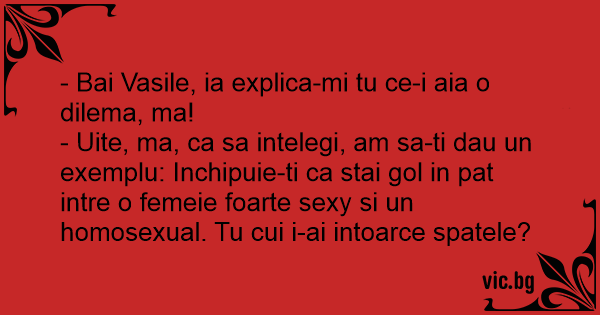 - Bai Vasile, ia explica-mi tu ce-i aia o dilema, ma!