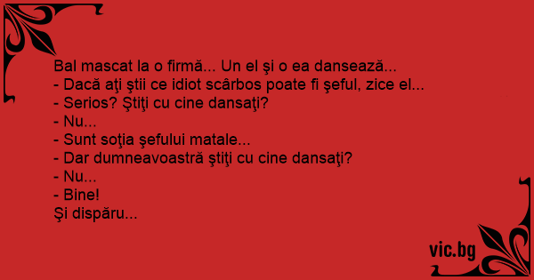 - Dacă aţi ştii ce idiот scârbos poate fi şeful, zice el...