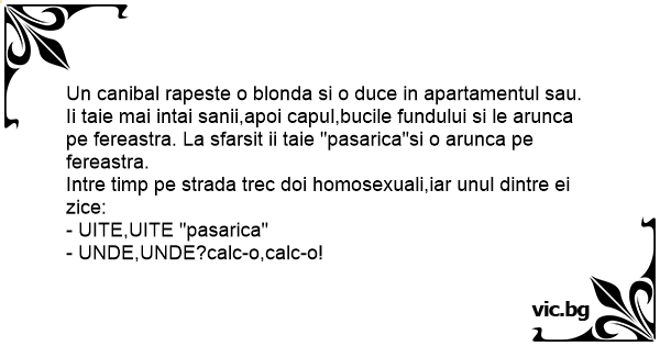 Intre timp pe strada trec doi homosexuali,iar unul dintre ei zice: