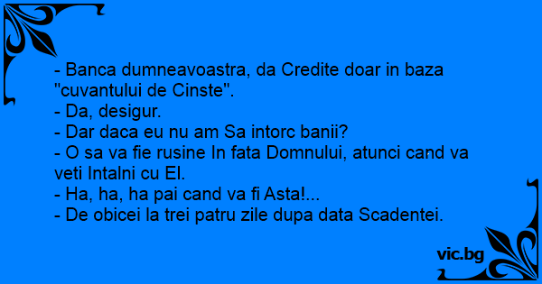 - Banca dumneavoastra, da Credite doar in baza "cuvantului de Cinste".