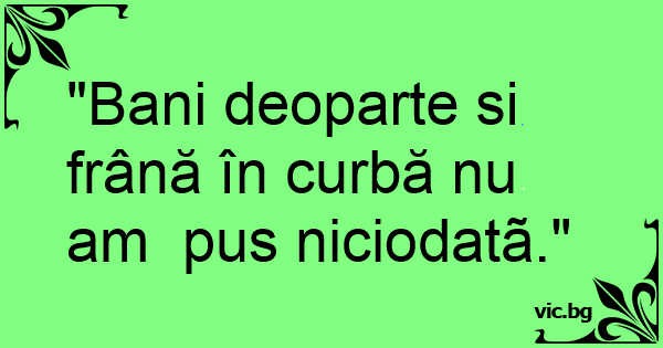 "Bani deoparte si frână în curbă nu am pus niciodatã."