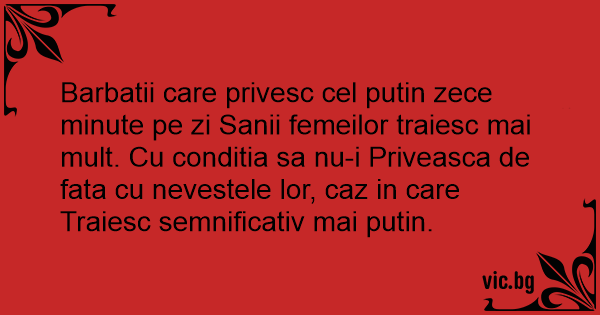 Barbatii care privesc cel putin zece minute pe zi Sanii femeilor traiesc mai mult. Cu conditia sa nu-i Priveasca de fata cu nevestele lor, caz in care Traiesc semnificativ mai putin.