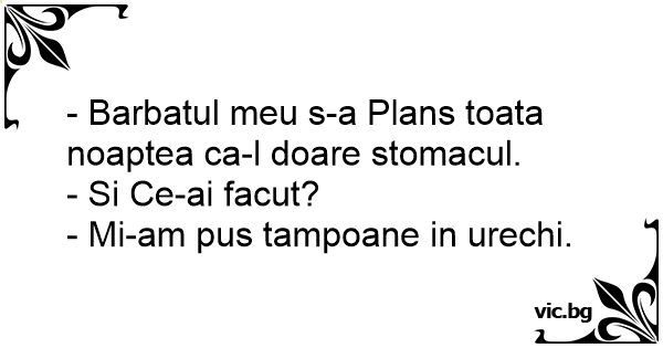 - Barbatul meu s-a Plans toata noaptea ca-l doare stomacul.