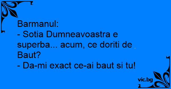 Barmanul: - Sotia...