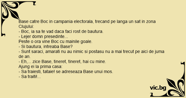 - Sa traiesti, tataie! se adreseaza Base unui mos.