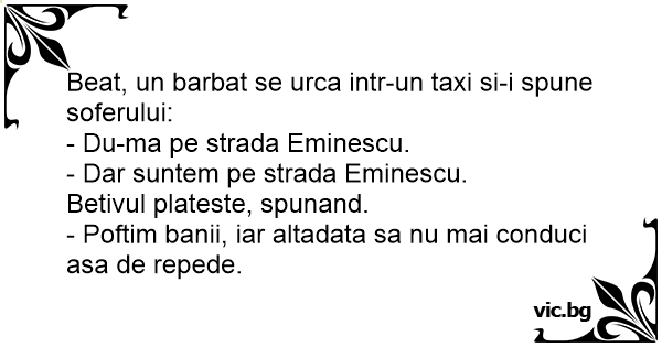 Beat, un barbat se urca intr-un taxi si-i spune soferului: