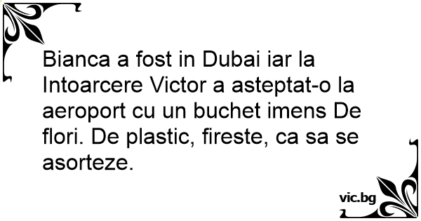 Bianca a fost in Dubai iar la Intoarcere Victor a asteptat-o la aeroport cu un buchet imens De flori. De plastic, fireste, ca sa se asorteze.