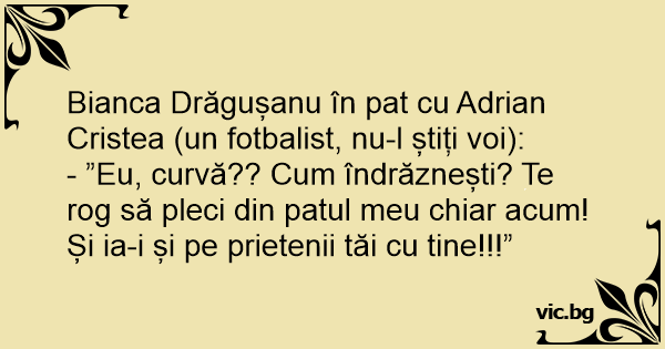 Bianca Drăgușanu în pat cu Adrian Cristea (un fotbalist, nu-l știți voi):
