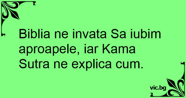 Biblia ne invata Sa iubim aproapele, iar Kama Sutra ne explica сuм.