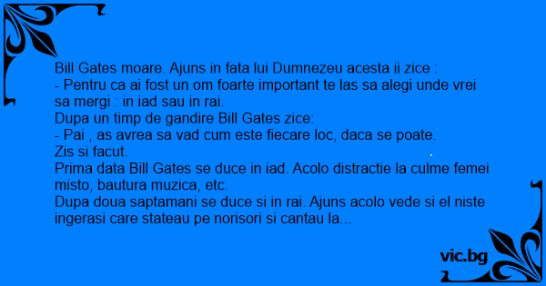 Asa ca Bill Gates se duce laDumnezeu si ii zice ca vrea sa mearga in iad.