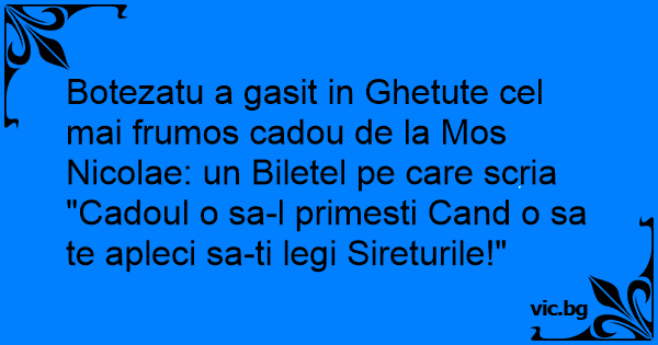 Botezatu a gasit in Ghetute cel mai frumos cadou de la Mos Nicolae: un Biletel pe care scria "Cadoul o sa-l primesti Cand o sa te apleci sa-ti legi Sireturile!"