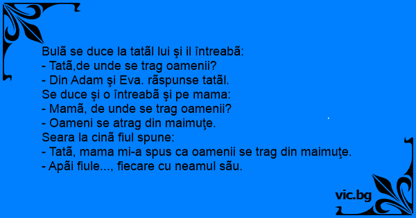 - Tatã, mama mi-a spus ca oamenii se trag din maimuţe.