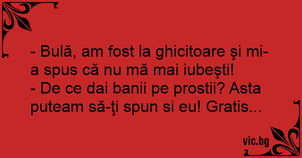 - Bulă, am fost la ghicitoare şi mi-a spus că nu mă mai iubeşti!