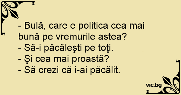 - Bulă, care e politica cea mai bună pe vremurile astea?