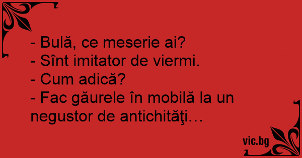 - Bulă, ce meserie ai?