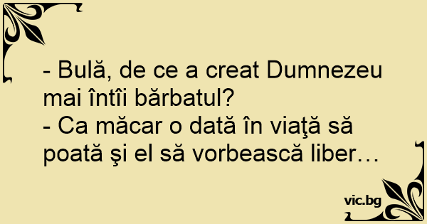 - Bulă, de ce a creat Dumnezeu mai întîi bărbatul?