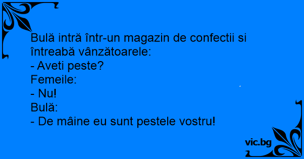 Bulă intră într-un magazin de confectii si întreabă vânzătoarele: