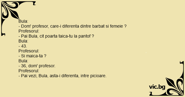 - Pai Bula, cit poarta taica-tu la pantof ?