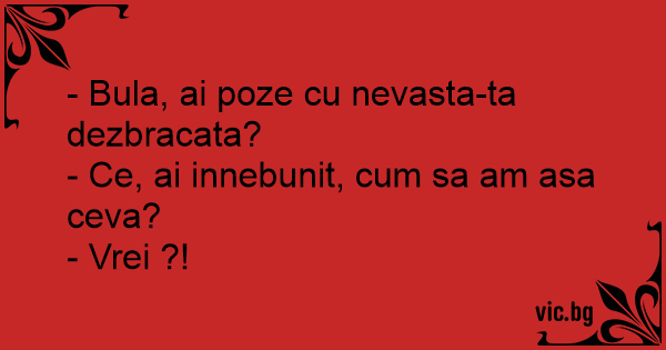 - Bula, ai poze cu nevasta-ta dezbracata?