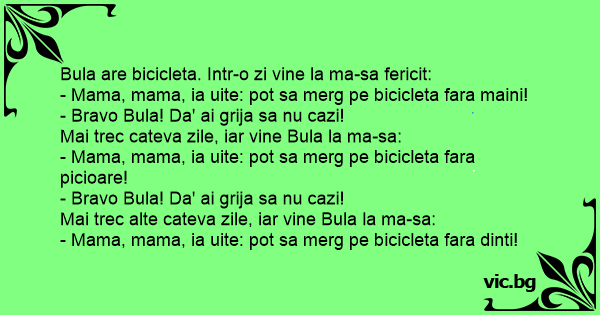 - Mama, mama, ia uite: рот sa merg pe bicicleta fara dinti!