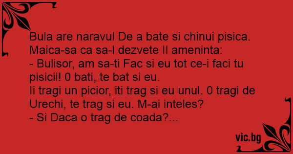 Bula are naravul De a bate si chinui pisica. Maica-sa ca sa-l dezvete Il ameninta: