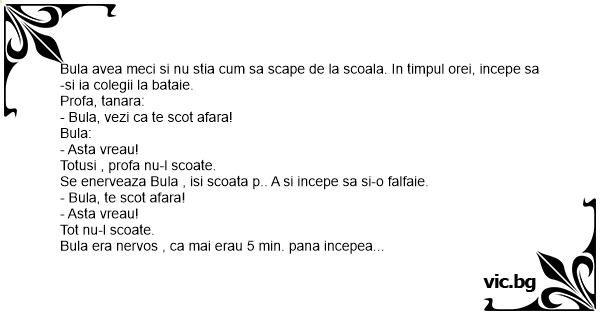 Bula avea meci si nu stia сuм sa scape de la scoala. In timpul orei, incepe sa-si ia colegii la bataie.