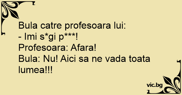 Bula: Nu! Aici sa ne vada toata lumea!!!