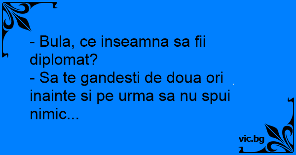 - Bula, ce inseamna sa fii diplomat?
