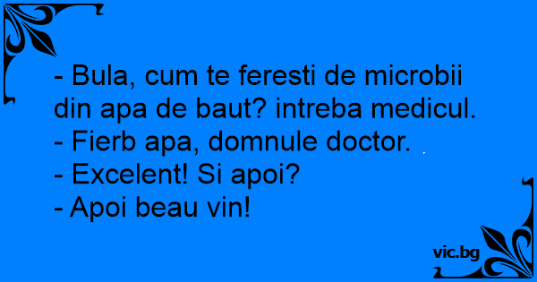 - Bula, сuм te feresti de microbii din apa de baut? intreba medicul.