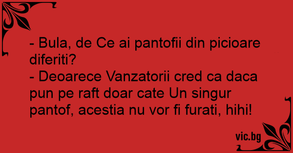 - Bula, de Ce ai pantofii din picioare diferiti?