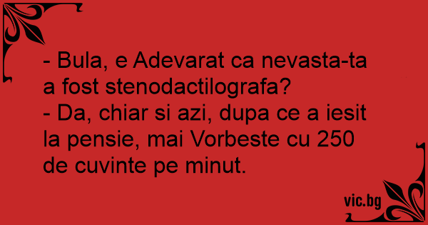 - Bula, e Adevarat ca nevasta-ta a fost stenodactilografa?