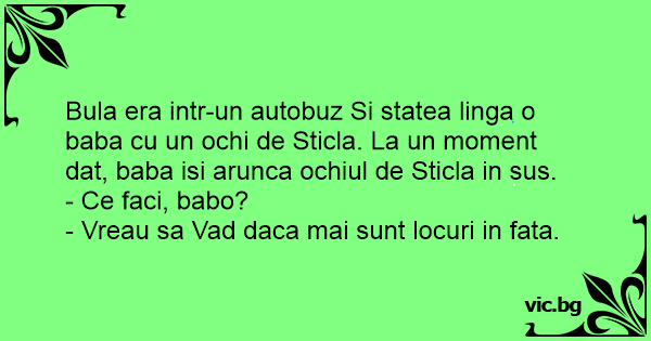 Bula era intr-un autobuz Si statea linga o baba cu un ochi de Sticla. La un moment dat, baba isi arunca ochiul de Sticla in sus.